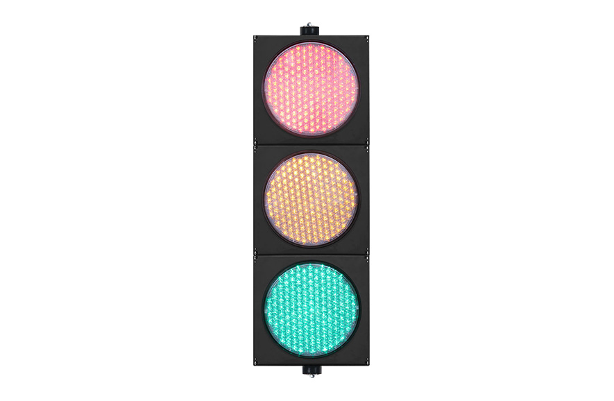 道路交通信號燈可對應于路口某進口,根據需要安裝一個或多個信號燈組。或安裝在出口左側、出口上方、出口右側、進口左側、進口上方和進口右側。若只安裝一個信號燈組,應安裝在出口處。一般采用柱式安裝在道口前路側。